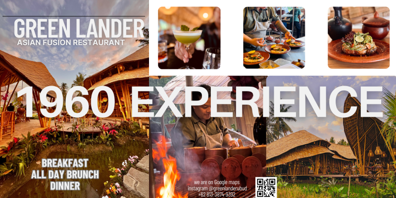 At our Green Lander Restaurant, enjoy a farm-to-table fusion menu with a 1960s-inspired charm, rice field views, and refreshing cocktails like our signature caipirinha. Whether for a romantic getaway, a cultural escape, or a mindful retreat, Green Lander is a place where every detail is guided by harmony, sustainability, and authentic Balinese hospitality.
